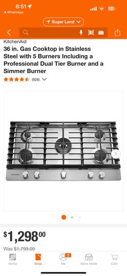 36 in. Gas Cooktop in Stainless Steel with 5 Burners Dual Tier Burner$1,000Houston, TX
