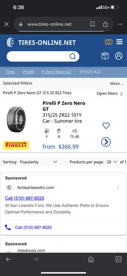 pirelli pzero nero gt 315 25 22 Tires $200Garden Grove, CA
