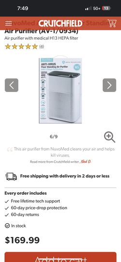 NuvoMed Anti-Virus Floor Standing Air Purifier MSRP: $170$110West Palm Beach, FL
