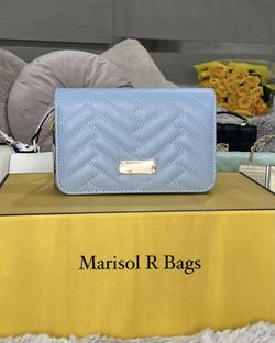 Bebe Sophia Small Crossbody Quilted Handbag Chain Purse Shoulder Bag Blush Light Blue $45E Atlantc Bch, NY