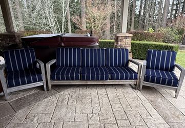 Kingsley Bate Teak Outdoor Sofa 2 Lounge Chairs Custom Cushions$1,250Woodinville, WA