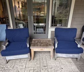 Restoration Hardware Outdoor Set Chairs + Teak Table Custom Cushions$599Woodinville, WA