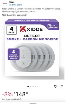 Kidde Smoke & Carbon Monoxide Detector, AA Battery Powered, LED Warning Light Indicators, 4 Pack$110Morton Grove, IL