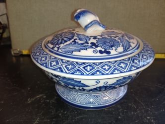 RARE Bombay Blue White Blue Bird Lidded Porcelain Candy Dish, Trinket Dish $30Wittmann, AZ