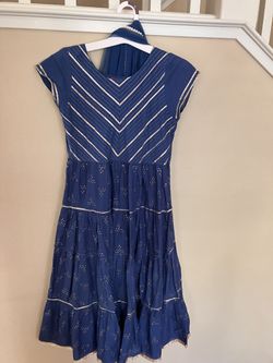 Bibia, 3 piece, navy blue & gold cotton anarkali set. Navy blue pyjami/legging and navy blue dupatta with boarder. Cap sleeves. $40San Jose, CA