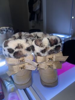 cheetah print fuzz beige bow boots$30Corona, CA