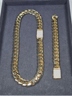 Cuban Link Gold Chain w Matching Bracelet Gold Plated 14k Iced Out Buckle Lock High Quality Pieces$275Riverside, CA