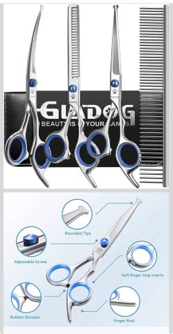 GLADOG Professional 5 in 1 Dog Grooming Scissors Set with Safety Round Tips, Sharp and Heavy-duty Pet Grooming Shears for Cats$10Bakersfield, CA