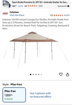 Coleman 13x13 instant canopy new$240San Antonio, TX