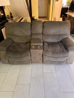 Gray Fabric Reclining Console Loveseat$450Carlsbad, CA