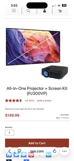 Gpx All In One Porjector +screen Kit$95Riverside, CA