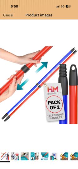 New HELOMOR 2-Pack New Telescopic Metal Broom Handles, USA Standard Thread Refill Replacement Stick Pole, 59' Long and 1.87' Wide, Blue and Red Pull B$20Los Angeles, CA