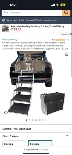 6 Steps Aluminum Sturdy Pet Dog Ramp Stairs for Small Medium Large Dogs, Folding Lightweight Ladder with Increased Nonslip Surface for Trucks, Cars, S$35Buffalo Grove, IL