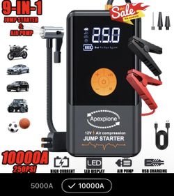 Jump Starter with Air Inflator, 10000A Portable Car Battery Jump Starter(2.64gal Gas/2.25gal Diesel), 12V Battery Charger Boost, 250PSI Auto-Shutoff T$50Riverside, CA