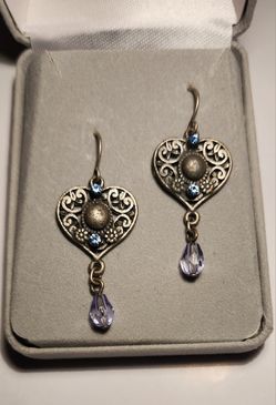 Pewter Heart And Blue Rhinestone Earrings$10Redmond, WA