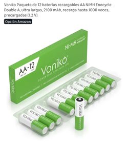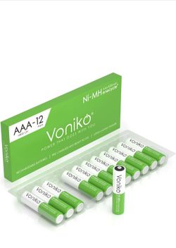 Voniko Paquete de 12 baterías recargables AAA NiMH Enecycle Triple A, ultra largas, 850 mAh, recarga hasta 1000 veces, precargadas (1.2 V)$10Rosemead, CA