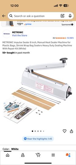 METRONIC Impulse Sealer 8 inch, Manual Heat Sealer Machine for Plastic Bags, Shrink Wrap Bag Sealers Heavy Duty Sealing Machine With Repair Kit (White$18City Of Industry, CA