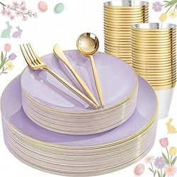 bUCLA 150PCS Disposable Plastic Plates - Light Purple and Gold$25Perris, CA