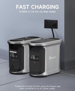 AMPACE Andes 1500 Power Station 2400W(Surge 3600W) Solar Generator, 1462Wh Solar Power Station, 1800W A-Boost Fast Charging, APP Control, Emergency Po$380Houston, TX