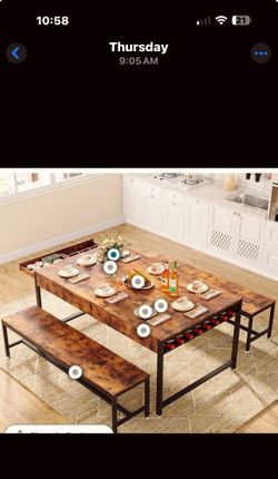 Loomie 63" Dining Table Set for 4-6, 3-Piece Kitchen Table with 2 Utensil Drawers, 2 Benches & Wine Rack, Modern Space Saving & Heavy Duty Dinner Tab$150Los Angeles, CA