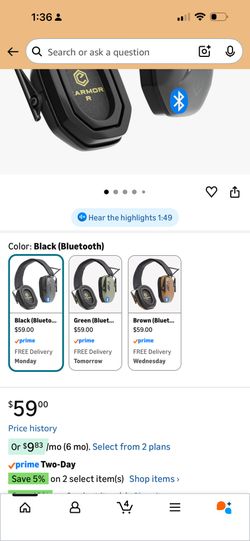 EARMOR M300T Electronic Bluetooth Hearing Protection - Shooting Earmuffs Noise Reduction for Hunting Shooting, Noise Control$55Pompano Beach, FL