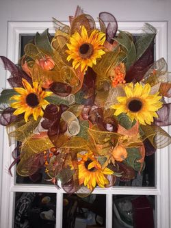 Handmade Fall Wreath with Sunflowers & Pumpkins – Autumn Mesh Door Wreath Thanksgiving Décor$25Tomball, TX