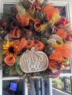 Handmade Hello Fall Deco Mesh Wreath – Autumn Door Decoration with Sunflowers & Ribbon$35Tomball, TX