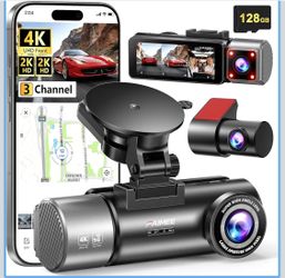 4K+2K+2K 3 Channel Dash Cam Front and Rear, 128GB Card Included, Dash Camera for Cars 5.8G/2.4G Dual Wifi, Built-in GPS$80Rosemead, CA