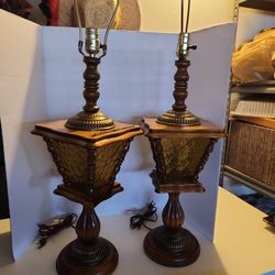 Amber Glass Panels & Wood~Mid Century Modern~Set of 2 Working Lamps$80Corona, CA