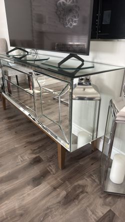 Modern Glam Mirrored Dresser / Sideboard – Silver Glass Accent Cabinet (Read Description)$220Corona, CA