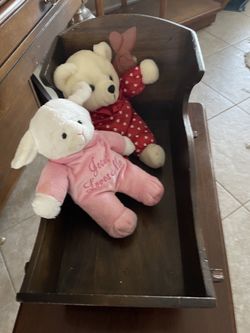 Wood ROCKER CRADLE 17 X 9" 2 STUFFED ANIMALS $20Orlando, FL