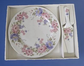 Andrea by Sadek Floral 10.75" Ivory Cake Plate & Server New in Box - Estate Sale!$15Cherryville, NC