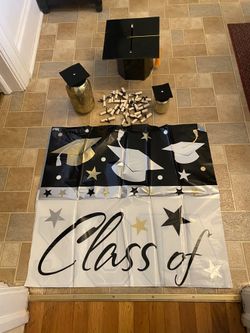 Graduation Black/Gold Items-18 Wooden Plaques-Table Runners-Decorative Jars-Stickers-Scrolls w/ Hat$25Cherryville, NC