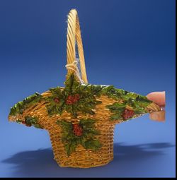 Vintage Suchart Studio Brown Wicker Basket w/ Holly & Berry Accents-Christmas-11L x 8.5W x 10.5H-Estate Sale!$12Cherryville, NC
