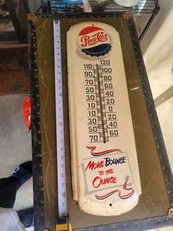 Pepsi Cola Sign. .Make Me An Offer. "More Bounce To The Ounce" Thermometer Sign. Mercury Works. $200Riverside, CA
