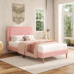 Full Size Boucle Bed Frame with Adjustable Headboard, Cloud Boucle Upholstered Platform Bed Frame, Rounded Corners Design & Easy Assembly, Box Spring $165Katy, TX
