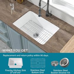 Undermount Kitchen Sink White 27 x 19 Inch,10" High Top Mount Fireclay Sink Drop In Single Bowl, Dual Mount, with Accessory 2 Types, Pure White, for K$159Katy, TX