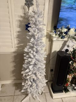 6Ft White Flock Christmas Tree Slim With Lights$40Temecula, CA