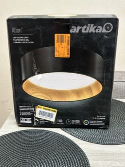 Brand New artika Alton Flushmount Ceiling Light Fixture, CCT, Black and Wood Accent$40Stanton, CA