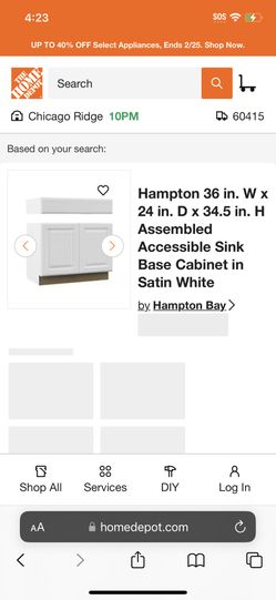 Satin White Vanity For Kitchen Sink 36 Inch Hampton Bay$125Worth, IL