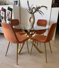 4 Gold Terra / Orange Velvet Dining Chairs – Modern – Great Condition$200Miami, FL