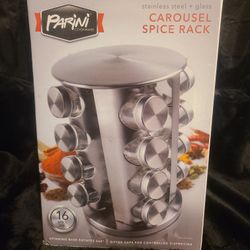 16 Pc Stainless Steel Carousel Spice Rack with Glass Jars$20Marysville, WA