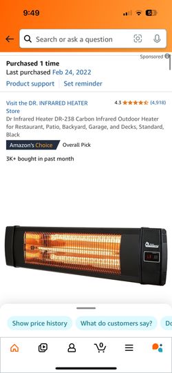 Dr Infrared Heater DR-238 Carbon Infrared Outdoor Heater for Restaurant, Patio, Backyard, Garage, and Decks, Standard, Black$100La Mesa, CA