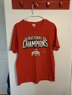 Ohio State Buckeyes National Champions red and white cotton T-shirt #BuckeyesNation #collegefootball #football #ohiostate #nationalchampions$15Cape Coral, FL