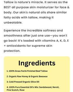 Tallow And Honey Balm Moisturizer $30San Jose, CA
