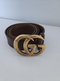 Gucci GG Marmont wide belt in brown leather with an antique brass Double G buckle. $130Vlg Wellingtn, FL