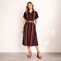 SHEIN Colorblock Striped Shirt Dress Button Front Midi Casual Chic Y2K Size L $10Riverside, CA