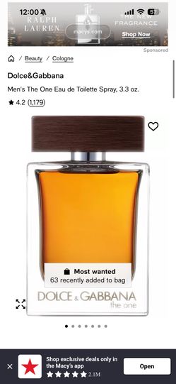 Dolce&Gabbana The One For Men Eau De Parfum Spray, 5 oz. $65San Diego, CA