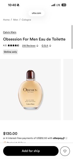 Calvin Klein Obsession For Men Eau de Toilette$60San Diego, CA