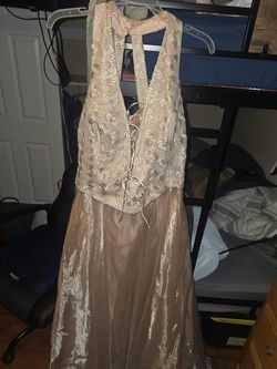 Silver Formal Gown Set – Beaded Halter Top & Long Satin Skirt – Elegant Evening Dress$75San Jose, CA